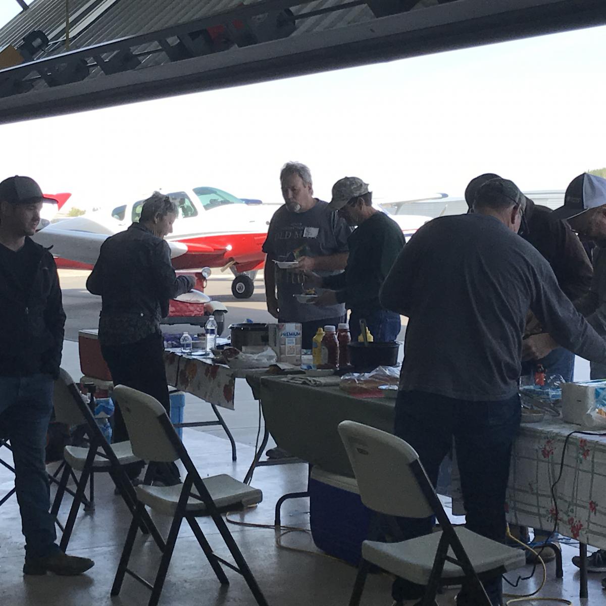 Phil Smith, with the amazing chili from a bag, and Foothills Aviation LLC staff, Gilberto Rizo, Arlene Armstrong, Corbyn Hudson and Ginger Jones were too camera shy to pose for a photo, but they helped shine up the planes, set up chairs and tables, get the word out, furnished dessert, and answered questions.